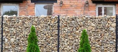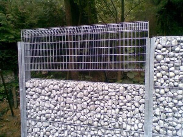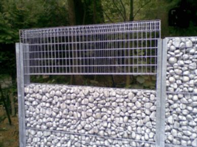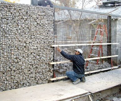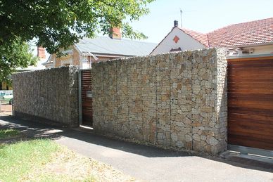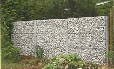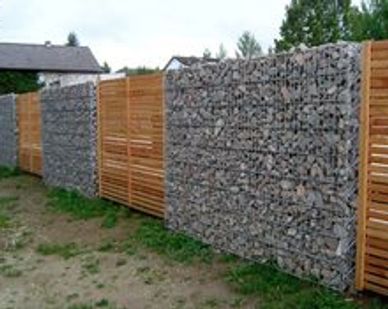 Gabion fences are narrow free standing walls constructed of sturdy wire mesh baskets with natural stone fillers. They have become the architect's and landscaper's choice for creating natural appealing barriers for privacy, security and noise control.