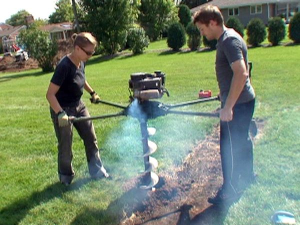 Dig a hole for each post using a post hole digger or powered auger, making sure that the holes are deep enough to support the height of the fence. Typically, 3 ft deep for a 6' high fence and 4 ft deep for a 8 ft high fence.