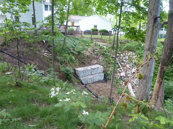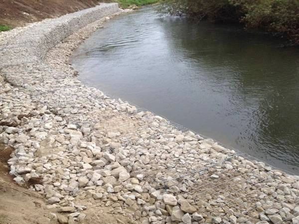 Below are example photos of erosion control solutions with gabions