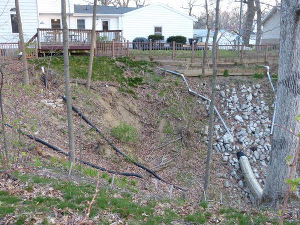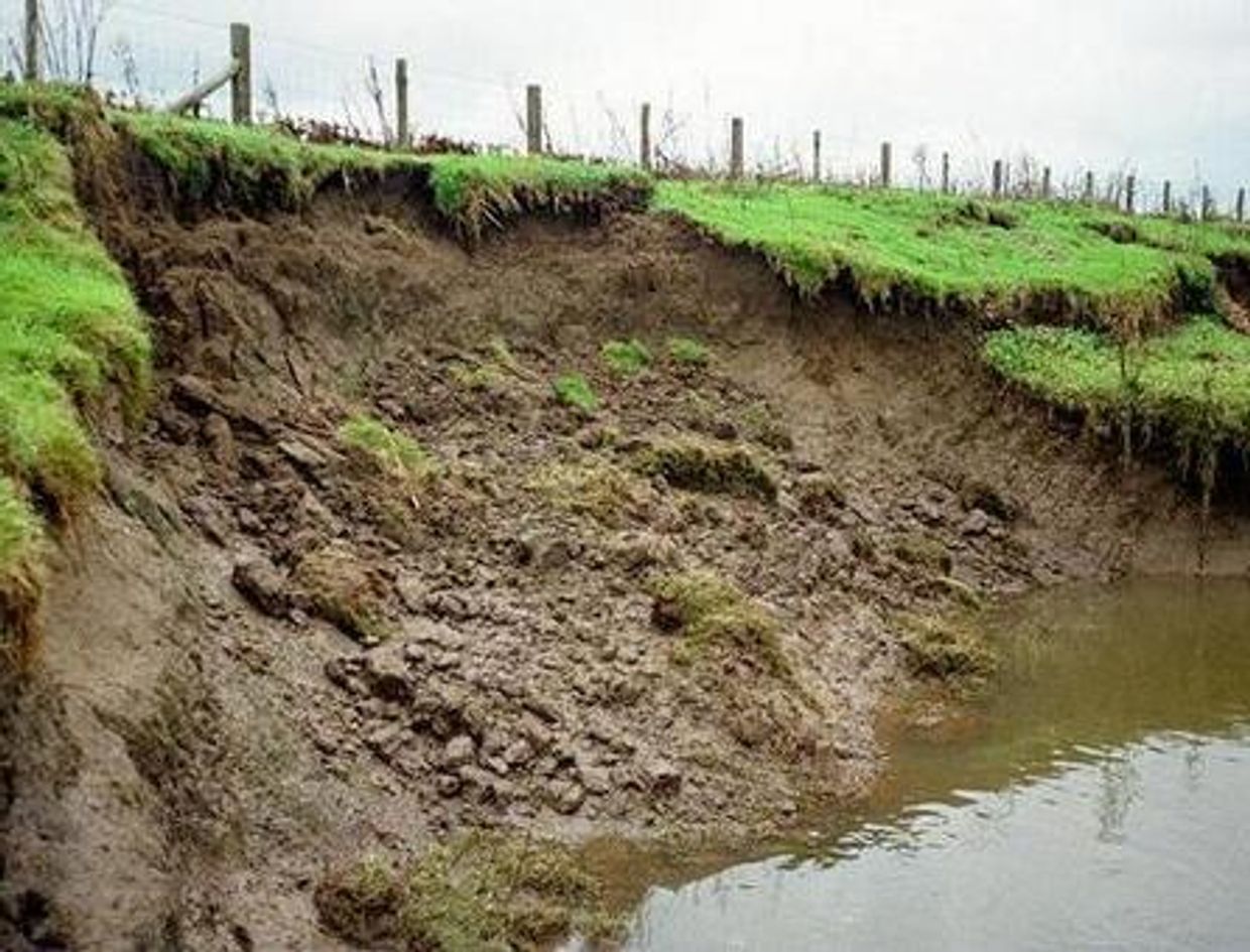 Shown here is a vivid example of soil erosion along a stream bank